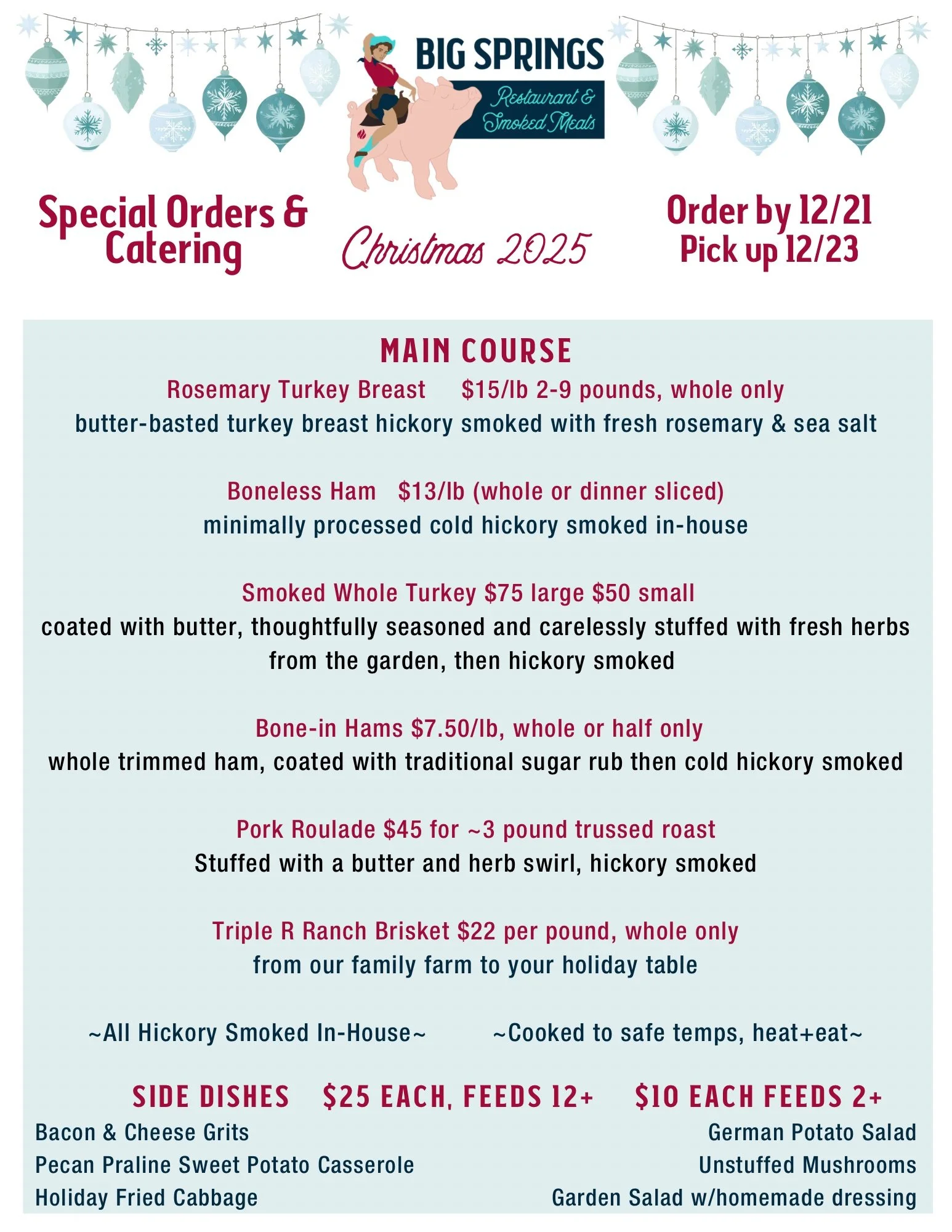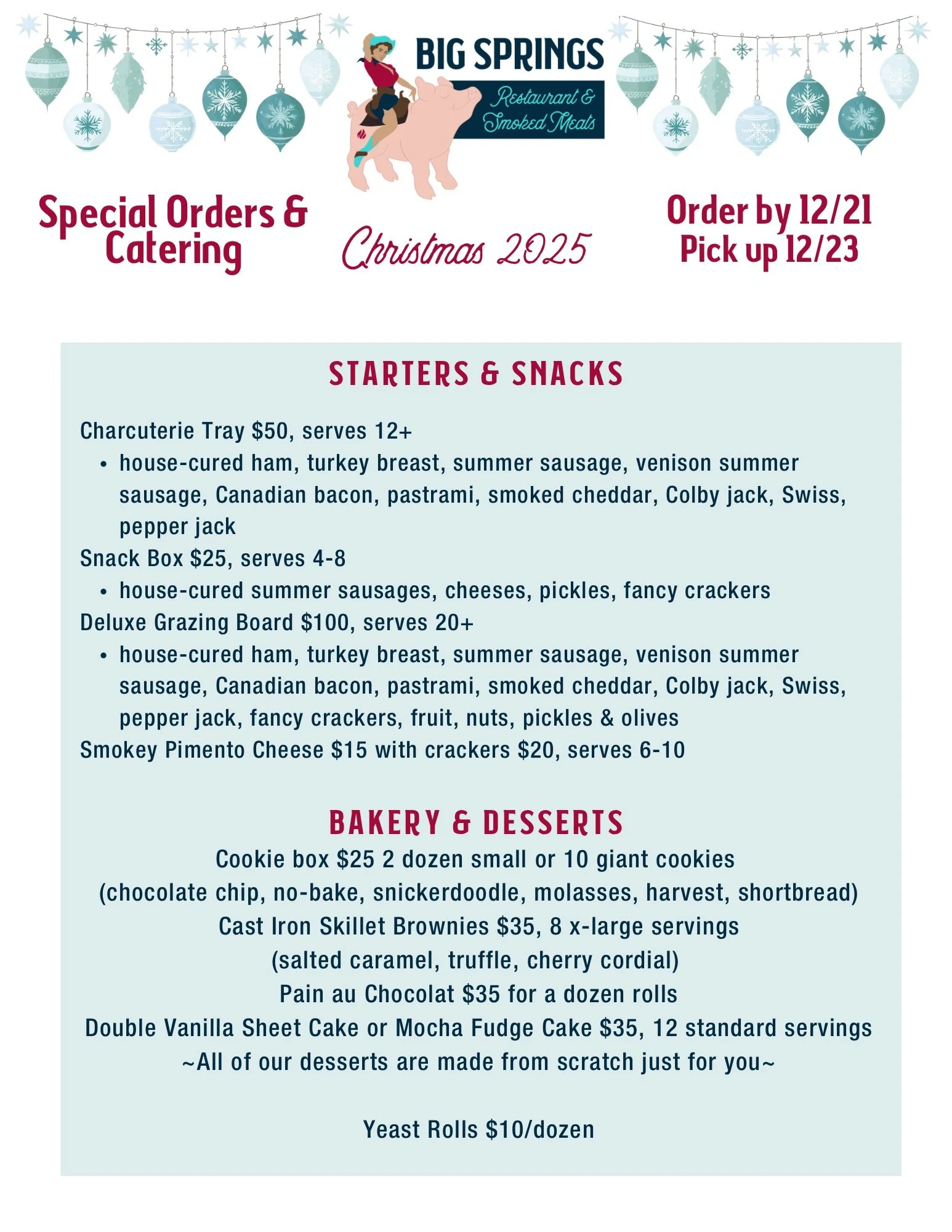 We do custom menus for meetings, parties, weddings, showers, and family gatherings all year long.
